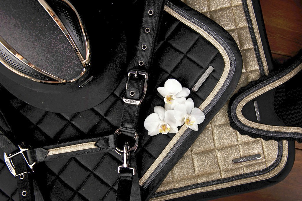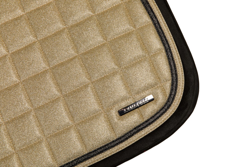 „Sparkling Schabracke. Mit Glitzerstoff, Füllung aus 240g Synthermax und 8mm besonders dichtem Schaumstoff. Mit einer besonders luftdurchlässigen und schnelltrocknenden Quick-Dry Unterseite.